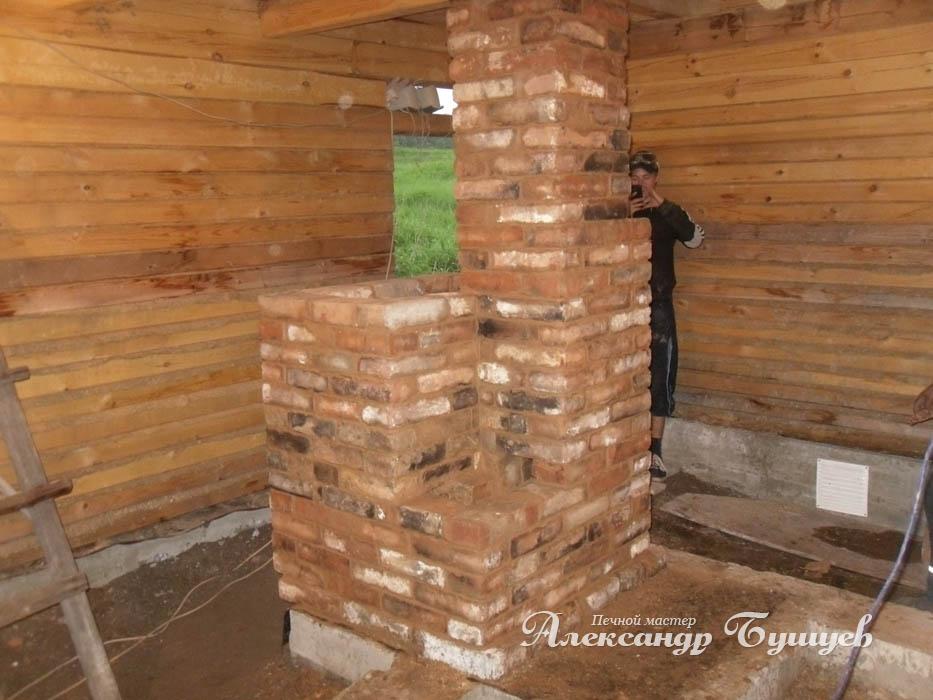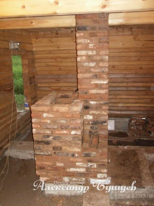 Кладка банной печи постоянного действия из старого кирпича.